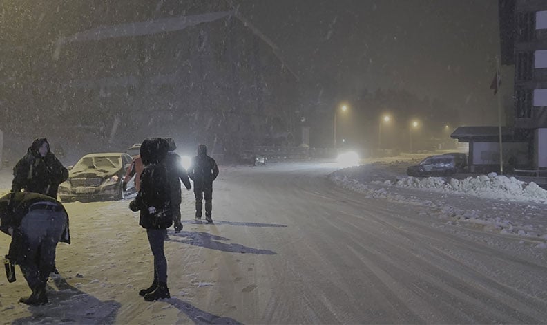 Kış turizminin gözde merkezlerinden Uludağ, akşam saatlerinde etkisini artıran yoğun kar yağışıyla birlikte yeniden beyaza büründü.