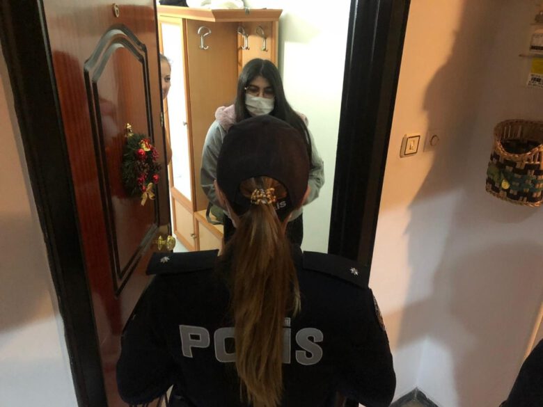 Genç kızı teslim eden polis ekiplerini kapıdan gören yakınları alkışlarla teşekkür etti.