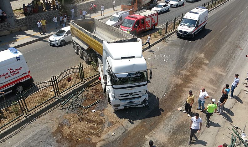 Diyarbakır’da seyir halinde olan bir TIR sürücüsü üst geçidi kullanmak yerine ana yola atlayan yayalara vurmamak için direksiyonu kırmasına rağmen 6 kişiye çarptı. Kazada 2’si ağır, 6 kişi yaralandı.