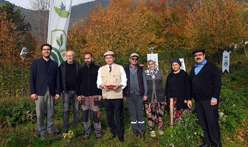 Osmangazi Belediye Başkanı Erkan Aydın, daha sonra ahududuları toplayarak, emeği geçen çiftçilerle hatıra fotoğrafı çektirdi.