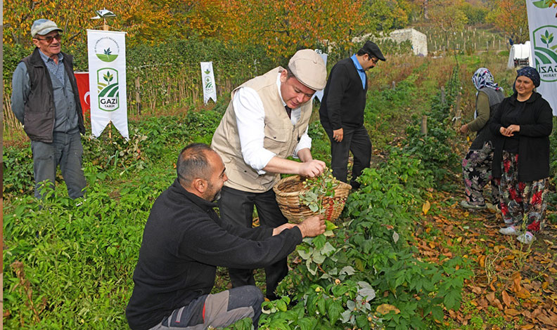 Gazi Tarım A.Ş. Genel Müdürü Arca Atay da yaptığı açıklamada, “Geçtiğimiz Mayıs ayında burada, doku kültürlerinden elde edilmiş bin beş yüz ahududu fidesini çiftçilerimizle birlikte toprakla buluşturmuştuk. Aradan altı ay geçti. Bu süre boyunca hava oldukça kurak geçti, yağış azdı. Ancak buna rağmen ahududularımız bu zorlu şartlara dayanarak beklenenden önce meyve verdi. Bu bizim için hem etkileyici hem de sevindirici bir gelişme oldu. Bursa, ahududu yetiştiriciliğinde çok büyük bir potansiyele sahip. Özellikle Uludağ bölgesi üreticilik açısından çok özel bir yer. Çilek, ahududu, yaban mersini ve böğürtlen gibi ürünler, en ideal şartlarda, tarım ilaçları kullanmadan yetiştirilebilir. Bu ürünlerin üretim potansiyellerini artırmak lazım” diye konuştu.