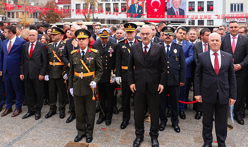 Tarihi şan ve şerefle dolu aziz milletin, Gazi Mustafa Kemal Atatürk’ün önderliğinde başlattığı ve büyük fedakârlıklarla kazandığı eşsiz zaferin neticesinde kurulan Cumhuriyetimizin 102. kuruluş yıl dönümünün coşku ve gururunu hep birlikte yaşadığımızı belirten Bursa Valisi Erol Ayyıldız, “Cumhuriyet; tarih sahnesinden silinmek istenen bir milletin, her türlü imkânsızlığa rağmen vatan sevgisiyle, hürriyet ve istiklal aşkıyla, iman ve inanç dolu bir kararlılıkla yürüttüğü Millî Mücadele’nin sonunda kazandığı büyük bir zaferin ve yeniden dirilişin sembolüdür.