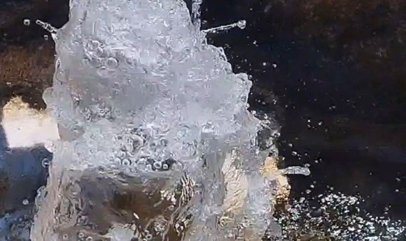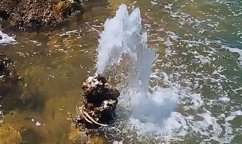 Van Gölü’nün çekilmesiyle Gevaş’ta gün yüzüne çıkan bir mikrobiyalitte fışkırır şekilde görülen su çıkması, görenleri hayrete düşürüyor.
