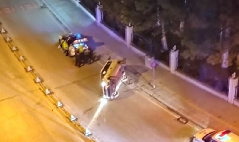 Eskişehir’de virajı alamayarak kaldırıma çarpan hafif ticari aracın devrilmesi sonucu meydana gelen trafik kazasında şans eseri yaralanan olmadı.
