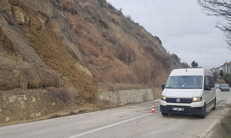 Yağış sonrası karayolunda toprak kaymaları yaşanıyor