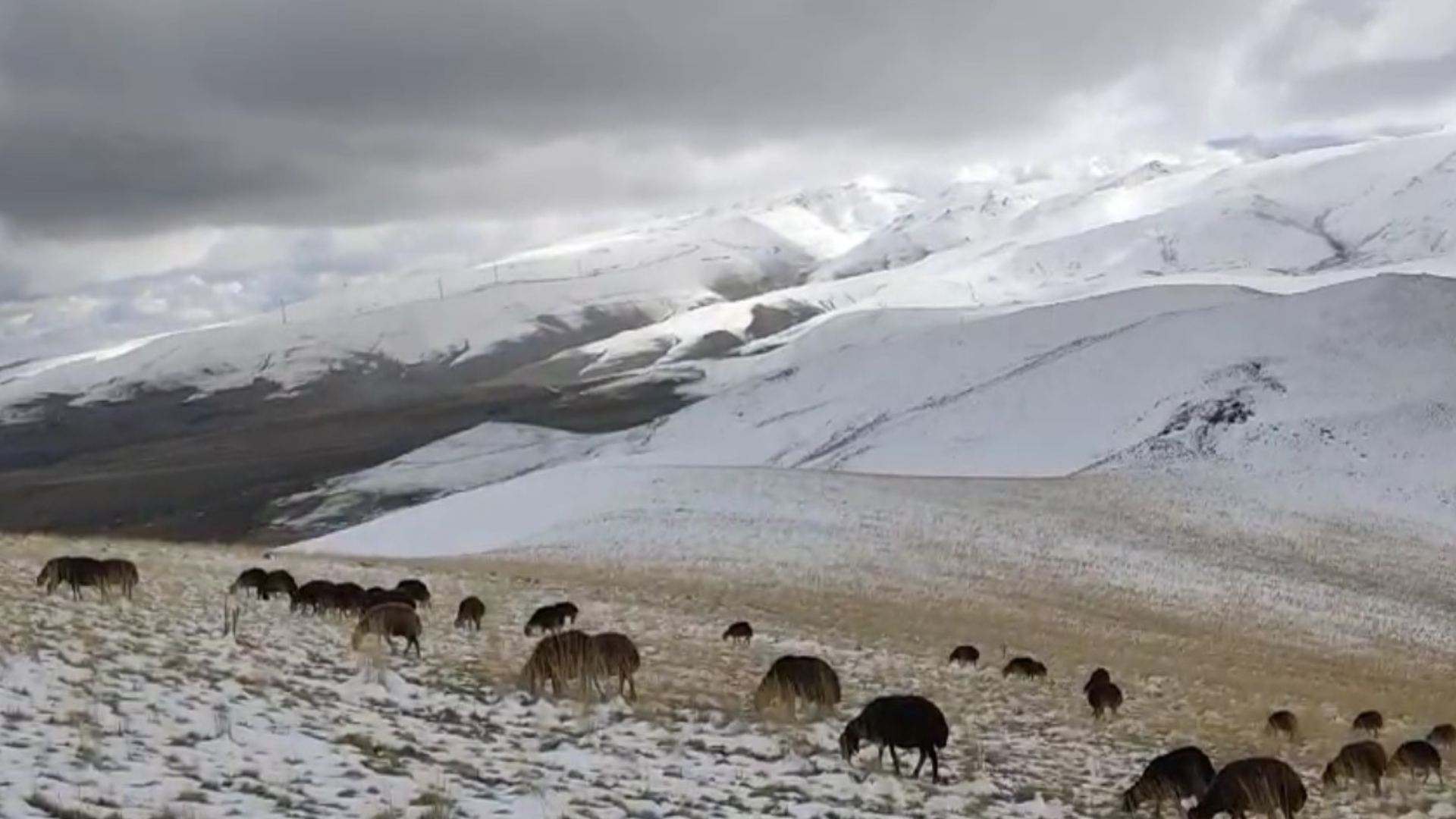 Ağrı’nın yüksek kesimlerinde etkili olan kar yağışına hazırlıksız yakalanan çoban, koyunlarını kar altında otlattı. Ağrı’da hava sıcaklarının aniden düşmesiyle beraber kentin yüksek kesimlerindeki bazı bölgelerde kar yağışı etkili oldu. Hamur ilçesine bağlı Danakıran köyünde de etkisini gösteren kar yağışı, sabah saatlerinde evlerinden çıkan köy sakinlerini hayrete düşürdü. Geçen yıllara göre erken gelen kar yağışına hazırlıksız yakalanan bir çoban ise koyunlarını kar altında otlatmak zorunda kalınca ortaya renkli görüntüler çıktı.