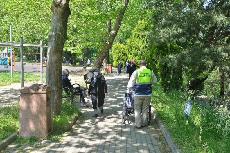 22 Mart’tan bu yana sokağa çıkmaları kısıtlanan 65 yaş ve üzeri vatandaşlara aralıksız destek veren Yıldırım Belediyesi, normalleşme sürecinin başlamasıyla birlikte geçici süreyle sokağa çıkabilen ilçe sakinlerine dışarıda geçirdikleri süre boyunca refakat etti. Geride kalan 44 günlük kısıtlama süresi boyunca, sıcak yemekten erzak desteğine, ekmek ulaştırma hizmetinden emekli maaşı çekme, fatura ödeme gibi resmi işlemlere kadar birçok alanda ilçe büyüklerinin yanında olan Yıldırım Belediyesi, Vefa Sosyal Destek Grubu ekipleriyle, 10 Mayıs 11.00-15.00 saatleri arasında evlerine yakın noktalarda yürüyüş yapan yaşlılara refakat ederek ulaşımlarını sağladı.