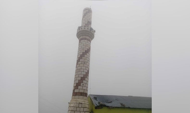 Kars’ın Digor ilçesi Mahirbey köyünde yıldırım camii minaresine düştü.