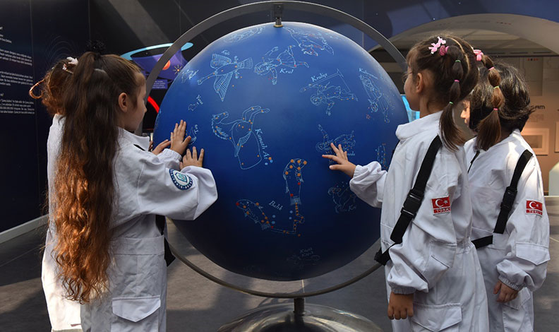 Çocuk Üniversitesi’nde minikler, astronot kıyafetleri giyerek uzay ve astronomi temalı sergi alanında bir astronotun 24 saatini gözlemliyor. Dünya’dan uzaya doğru çıkılan bu yolculukta yıldızları, karadeliğin gizemini, manyetik alanın ve mevsimlerin nasıl oluştuğunu, güneş sisteminde bulunan gezegenlerin sesleri ile Piri Reis ve Es-Sufi’nin haritalarını arttırılmış gerçeklik uygulamasını deneyimleme fırsatı bulan çocuklar, VR uygulaması ve döner illüzyonlar gibi eğitici deneyimlerle uzaydaki çeşitli fiziksel olayları anlama fırsatı buluyor.