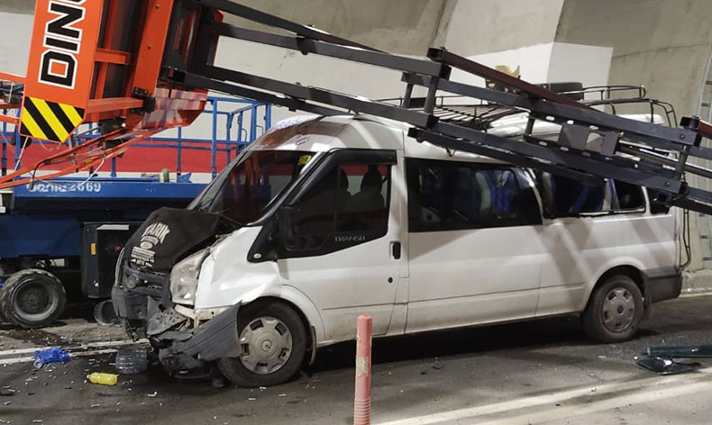 Artvin’de tünel içinde aydınlatma çalışması yapan işçilerin bulunduğu ‘manlift’ adı verilen asansöre yolcu minibüsü çarptı. Kazada 7 kişi yaralandı.