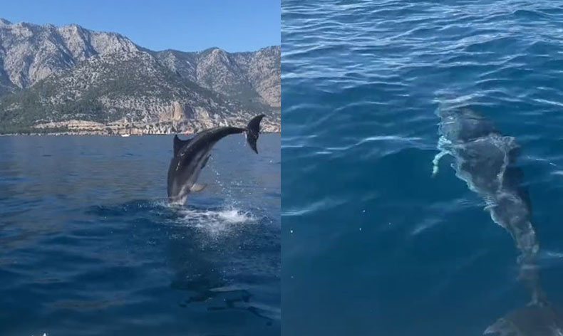 Antalya’nın önemli turizm merkezleri arasındaki Kemer ilçesinde tekneyle gezintiye çıkan vatandaşlar bir anda yunusla karşılaştı. Küçük balıkçı teknelerinin arasından çıkan yunus, metrelerce havalanıp suya dalıp çıktı. Yunusun kendilerine eşlik ettiğini gören teknedekiler hem heyecan yaşadı hem de o anları görüntüledi. O sırada bir kadının ise yunusun şovu karşısında kahkaha attığı duyularak, “Sırılsıklam oldum, delirdi bu, çılgın” dediği duyuldu. Bir süre tekneyle ilerleyen yunus daha sonra gözlerden kayboldu.