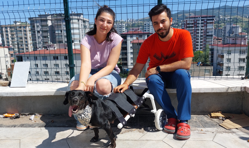 Samsun’da trafik kazası sonucu arka ayakları felç olan köpeğe sahip çıkan 2 arkadaş, yürüteçle yürüttükleri köpeğe şefkat göstererek örnek davranışta bulundu. Samsun’da trafik kazası sonucu omurgası kırılan Zeytin adı verilen labrador cinsi köpeğe Nurşah Birkay ve Doğukan Hazar Othan adlı veteriner fakültesi mezunu 2 arkadaş sahip çıktı.