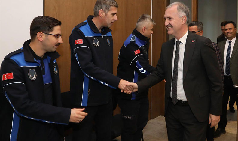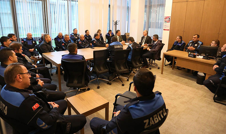 Zabıta Müdürlüğü’nün çalışmalarına ilişkin konuşan Başkan Taban, Zabıta Müdürlüğü’nün görev ve sorumlulukları itibariyle İnegöl Belediyesi’nin kolluk kuvveti olduğunu ve şehrin dört bir yanında sahada gayretle çalışmalar yürüttüğünü söyledi. 64 personelle hizmet müdürlüğün çalışmalarını sürdürdüğünü kaydeden Başkan Taban, “Bu personeller arasında veteriner hekimden tutun da trafik mühendisine kadar farklı alanlarda uzman çalışanlarımız da var. Zabıta Müdürlüğü görevleri itibariyle çok geniş yelpazede hizmet sunan bir birim. Bugün İnegöl’de açılan her işletmenin işyeri ruhsatının verilmesi ve denetlenmesinden tutun da şehrin tamamında kaldırım ve yol işgallerine, gıda işletmelerinin hijyen denetimlerine, ses ve gürültü şikayetlerinden uygunsuz katı yakıt tüketimine, okullarımızdaki kantinlerin denetimine kadar halk sağlığı ve güvenliğine dair çalışmalar yapıyorlar. Ben ekiplerimize özverili çalışmalarından dolayı teşekkür ediyorum” dedi.