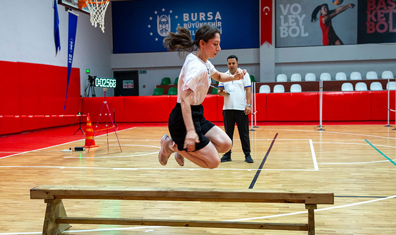 Başvuru sırasında boy ve kilo şartlarını taşıyan adaylar, yazılı sınavından sonra Vakıf Bera Parkı Kapalı Spor Salonu’nda özenle hazırlanan spor parkurunda fiziki dayanıklılık testine girdi. Bursa’nın yanı sıra farklı kentlerden de sınav için gelen genç adaylar, sıçrama tahtası, lastik geçme, ağırlık taşıma, sağlık topu, minder, slalom çubukları ve engel etabı gibi 7 etabı geçti. En iyi dereceyi elde etmek için ter döken adaylar, parkurun ardından sözlü mülakata girdi.