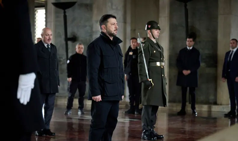 Zelenski, beraberindeki heyetle Misak-ı Milli Kulesi’nin önünden yürüyerek Gazi Mustafa Kemal Atatürk’ün mozolesine çelenk bıraktı ve saygı duruşunda bulundu.